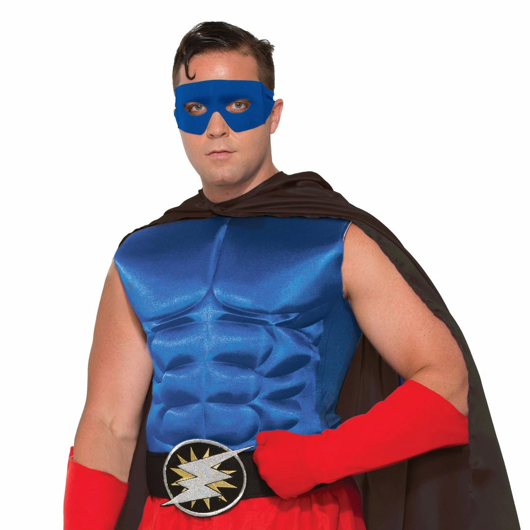 - Deluxe moulded muscle top in satin showing flexed torso muscles