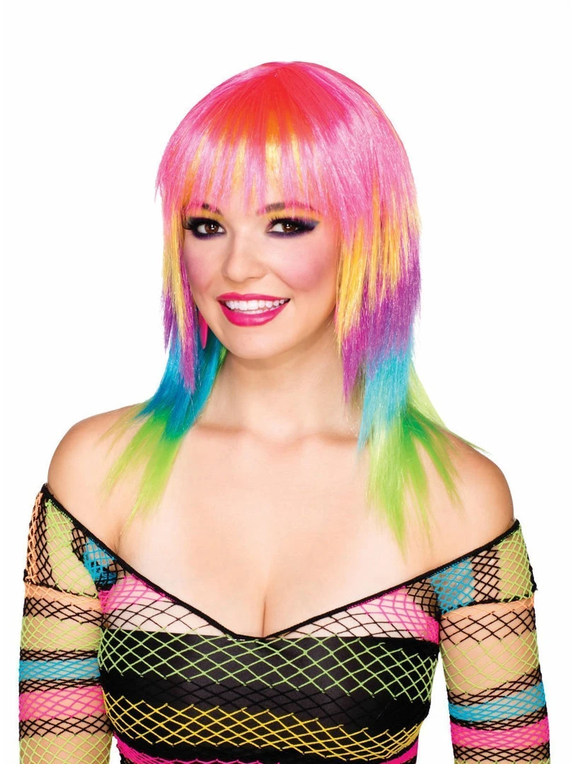 Get Electric with this colourful and cool long striped multi-coloured wig. Perfect for hitting the Nightclubs!