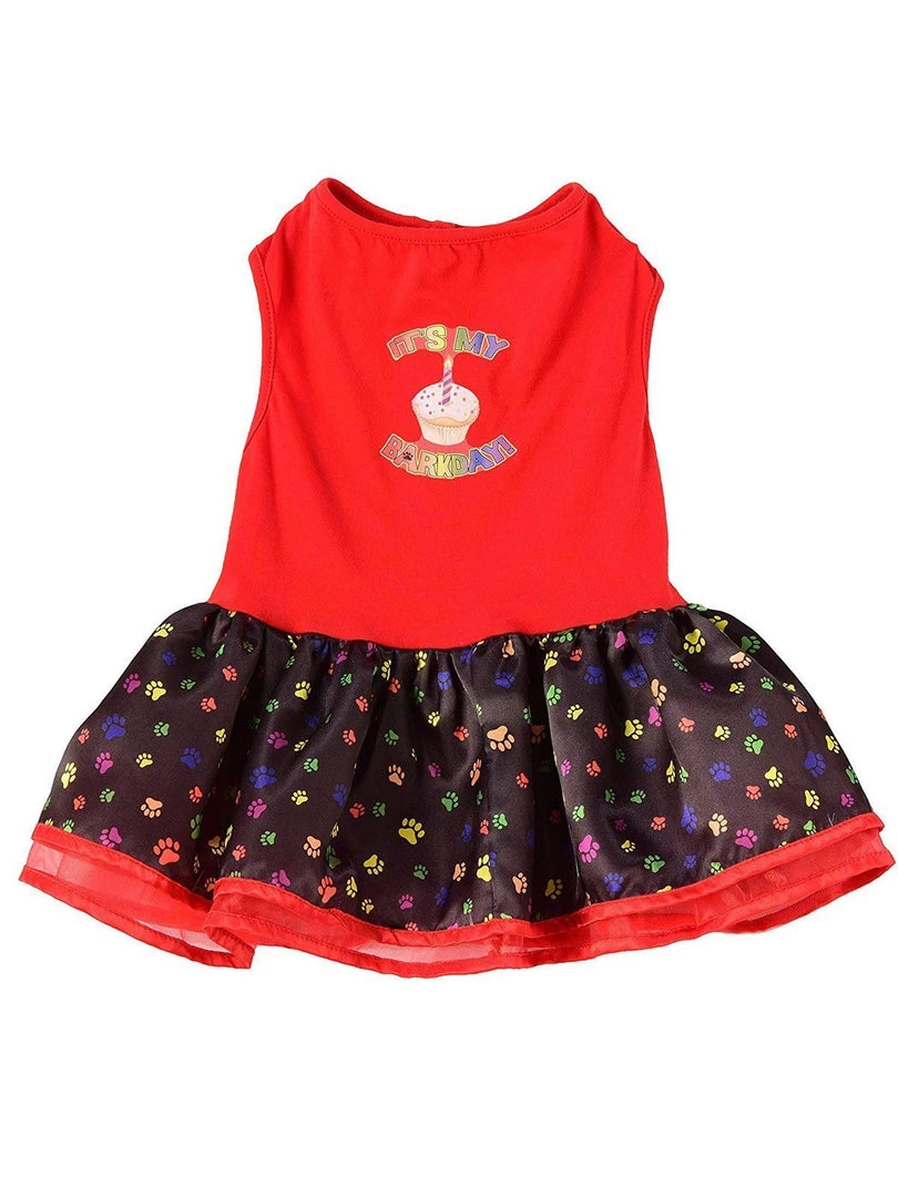 Celebrate your pup’s BARK-day with this cute little Bark-day birthday tutu dress, complete with cake and candle image.