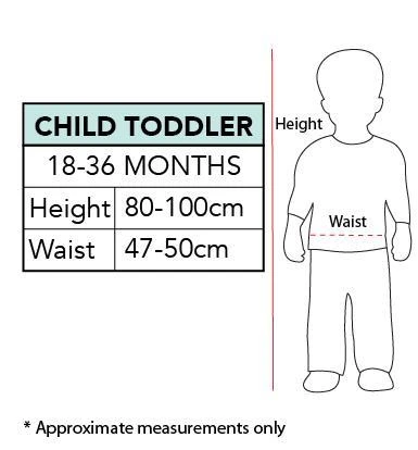 - Jumpsuit features an attached tail with fibre filled stuffing and has velcro closures at rear