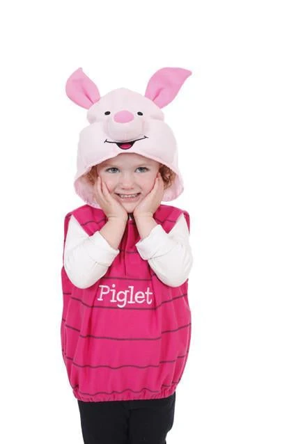 - The tabard has an attached hood with 3D felt plush Piglet facial features and floppy ears