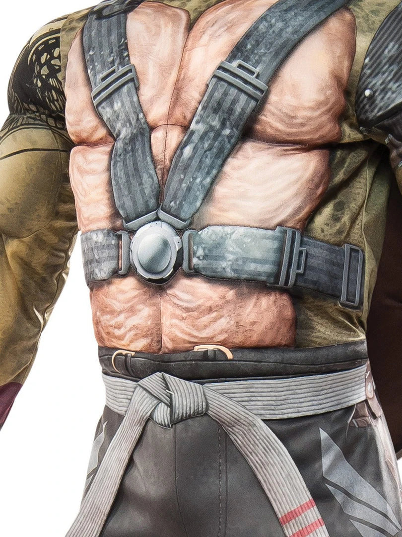 - Digitally printed jumpsuit with fibre filled muscle chest and arms to create bulk